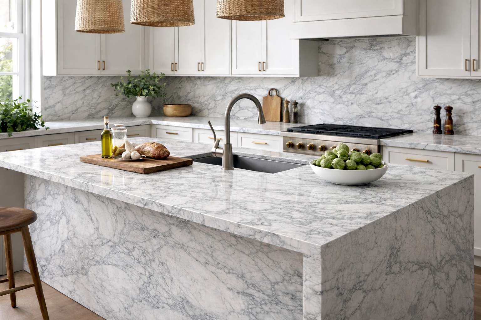 1. Czy marmur Bianco Carrara nadaje się na blaty kuchenne?