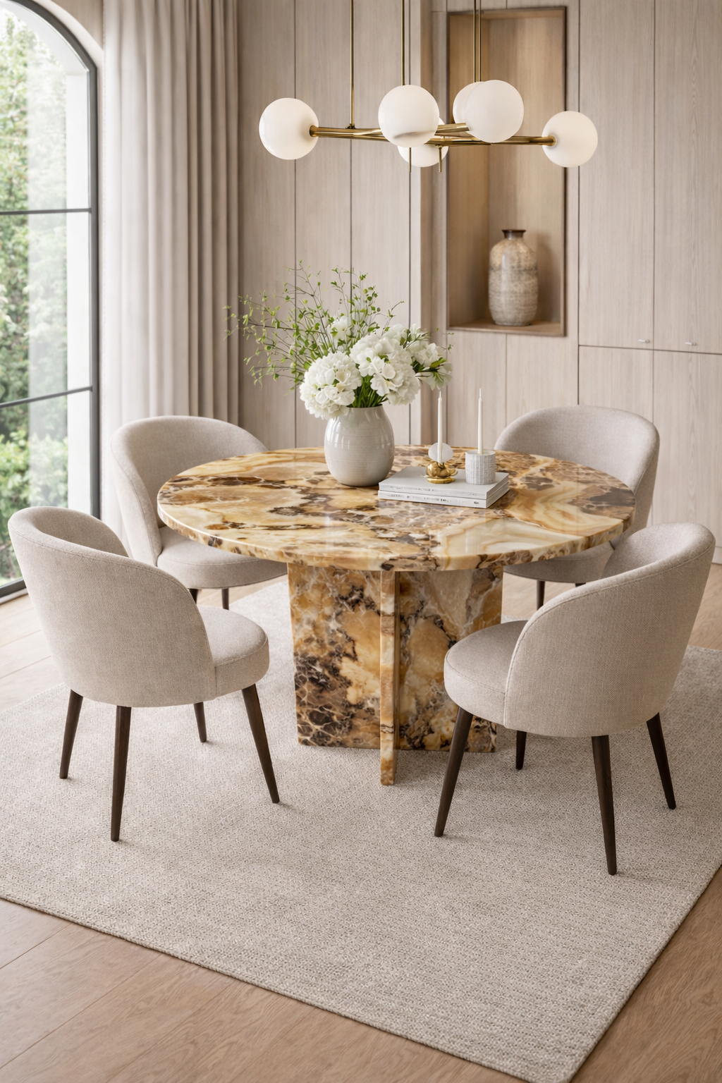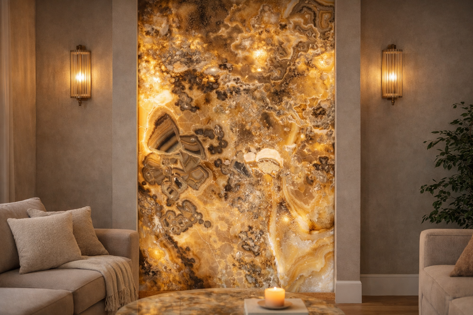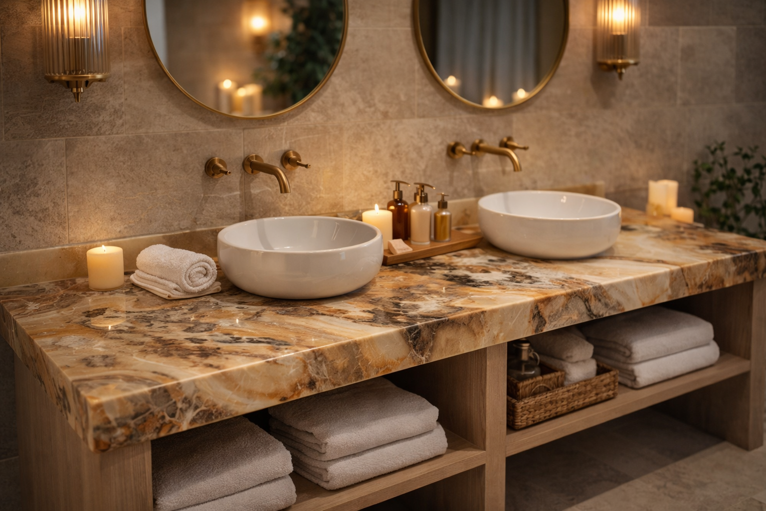 Wykonane w całości z Onyx Venge to rozwiązanie dla najbardziej wymagających wnętrz, gdzie kamień staje się nie tylko materiałem wykończeniowym, ale także artystycznym elementem mebla.